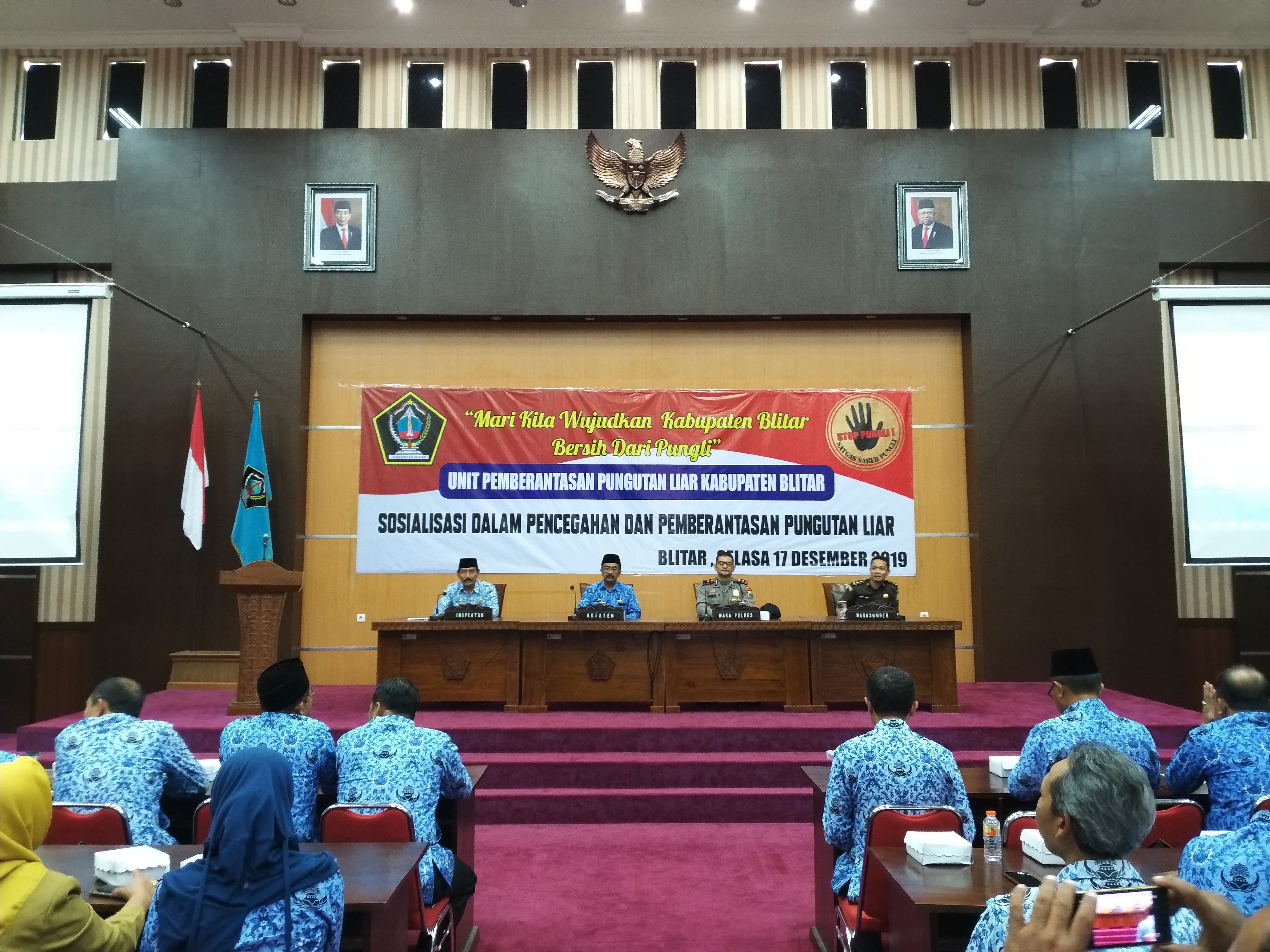 Acara yang diselenggarakan pada 17 Desember 2019 di Ruang Candi Penataran Lt. 3  diinisiasi oleh Unit Pemberantasan Pungutan Liar Kabupaten Blitar dengan narasumber dari Kajari Blitar, Kasat Reskrim dan Kasubag Hukum Polres Blitar dihadiri oleh semua Kepala OPD, Bagian, Camat, Kepala Desa dan Perwakilan Kepala Sekolah di Kabupaten Blitar. Untuk Materi Sosialisasi bisa di download dibawah ini [embeddoc url="https://inspektorat.blitarkab.go.id/wp-content/uploads/PAPARAN-SABER-PUNGLI-SUBBAGKUM.pdf" download="all"] [embeddoc url="https://inspektorat.blitarkab.go.id/wp-content/uploads/PAPARAN-PENCEGAHAN-PUNGLI-2019-tampil-1-1.pdf" download="all"][embeddoc url="https://inspektorat.blitarkab.go.id/wp-content/uploads/3-dana-desa-1.pdf" download="all"]